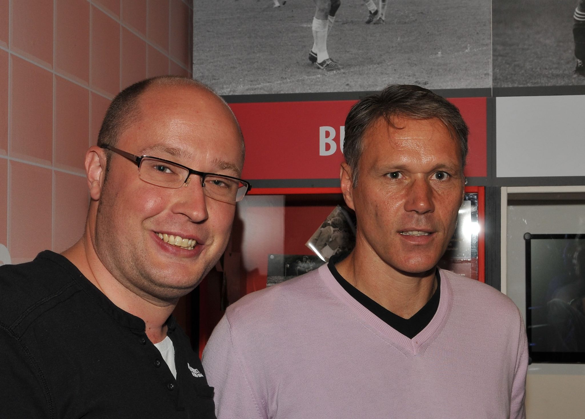 Voorzitter van het AZ-museum Ruud Koning laat zien welke